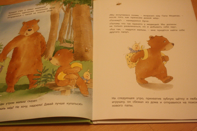 Удивительная, трогательная история о том, как медвежонку наскучило заниматься обыденными делами, как он думал, что хорошо живут другие дети, как же он ошибся. Он понял это, когда пошел искать другого папу, но так и не нашел его.Советую всем: ненагруженный текст, приятные иллюстрации.