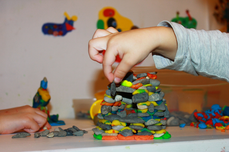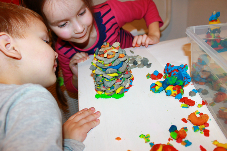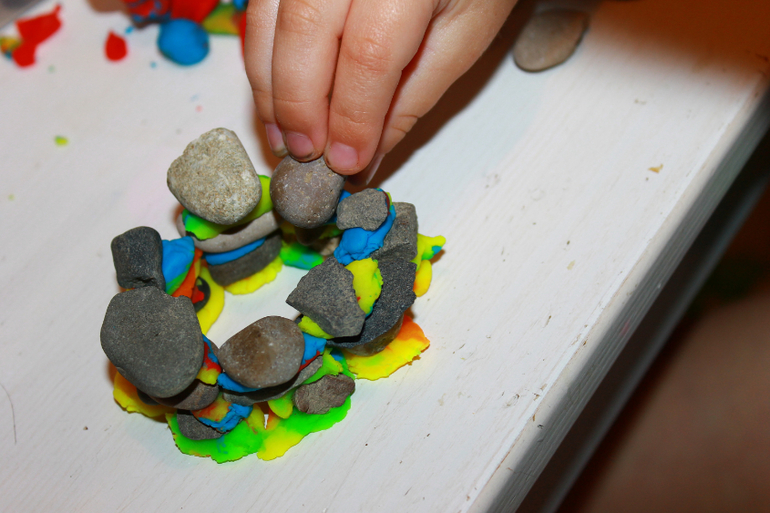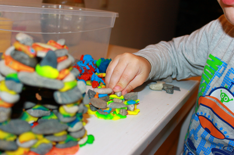 Собрала сегодня детям коробку морской гальки. Это всегда ужасно интересно дать им нечто неоформленное, не развивающую игрушку за 5 тысяч рублей, в которой все уже продумано "от" и "до", и посмотреть,что они с ЭТИМ будут делать. Потрясающе наблюдать за тем как начинает работать детский мозг, соображая что это и чем может быть, как использовать и куда применить.