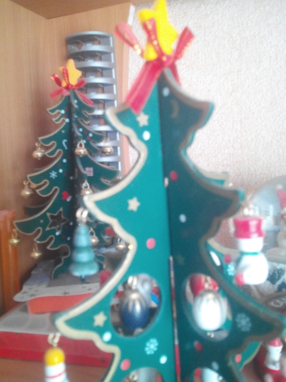Собираются елочки просто, игрушки крепкие, за почти год стояния елки не рассохлись, игрушки не попадали. Елки активно использовались дочерью для игр - куклы водили около них хоровод, изображали дремучий лес, короче не просто декорировали пространство, но и полностью были задействованы в играх.