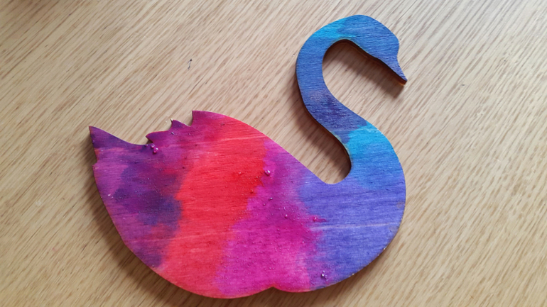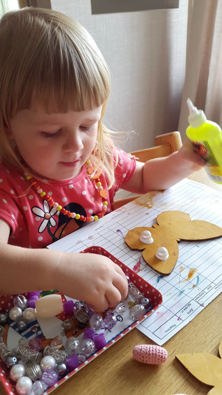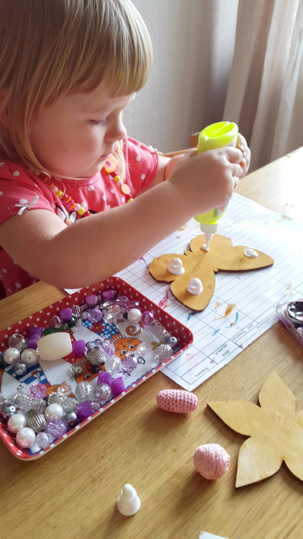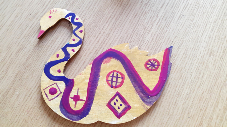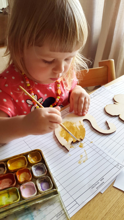 Мистер Умелец или Очумелые ручки (поделки, аппликации, интересные находки, идеи и задумки)На бумаге рисовать надоедает это факт. Недавно обнаружила, что в магазинах большой выбор деревянных фигурок, как плоских, так и объемных. Это прекрасный повод учиться расписывать, украшать и видеть предмет не на бумаге, а в пространстве, как бы оживить силуэт своей фантазией. Чем мы и занялись. Я тут решила совсем не вмешиваться в процесс. Маша подросла и готова сама принимать решения. И тут для меня открываются некоторые удивительные моменты. В тот день, у нее было такое настроение, что ВСЕ фигурки она раскрасила бежевым однотонным цветом, я лишь взяла лебедя, раскрасила сама и показала возможность цветовых переходов, на что получила отпор. Все цветы и бабочки у Маши были однотонные! Затем я дала бусины и клей для украшения, и опять продолжила эксперимент невмешательства. Да, клей, конечно, торчит из под бусин, но дочь сделала четкие точки и четко уложила бусины, а это как никак результат, причем полностью ее собственный! Теперь эти фигурки живут у нее в комнате!