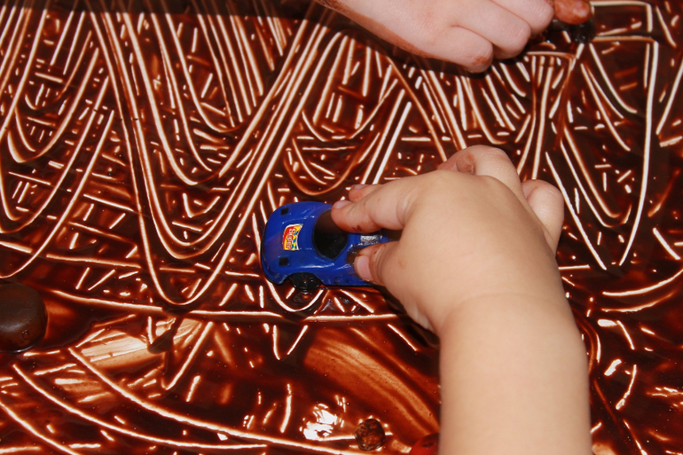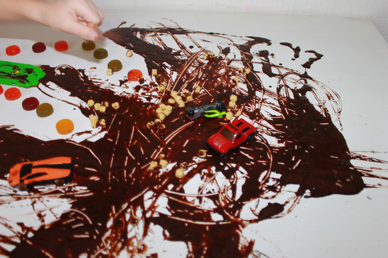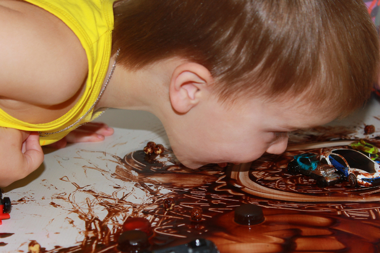 Переместились мы на кухню, грязь лесных троп заменило какао, раллийные машины есть в коллекции любого мальчишки, а детские руки придавали скорость не хуже любого самого мощного мотора.