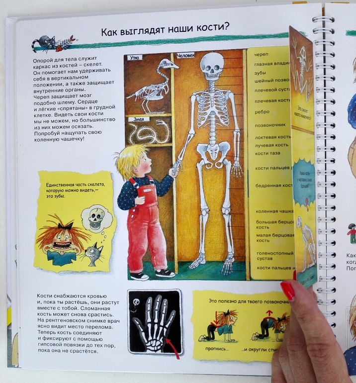 Отличный разворот про скелет, с названием основных костей, хорошая шпаргалка для меня