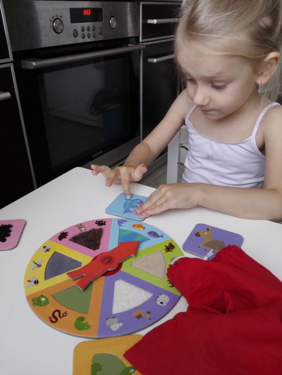 Осязание. У нас есть пару тактильных лото от Djeco. Одно с фактурами, второе с предметами. И в той и другой игре необходимо на ощупь выбрать нужный предмет. Игры супер конечно. Подробнее о них напишу в другом посте.
