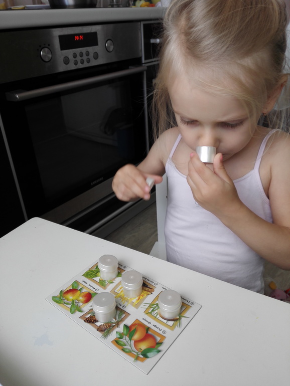 Обоняние. У нас лото запахов. Тоже отличная игра, мы всей семьей частенько играем в нее! Когда старщей дочке ее подарили она первые пол года ежедневно просила в него поиграть))