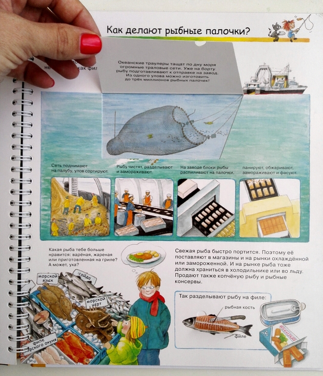 Смотрите сами. Первый разворот, на одной стороне нарисованы дети с разных стран, для нас это очень актуально, т.к. мы начали немного изучать географию, пост тут.