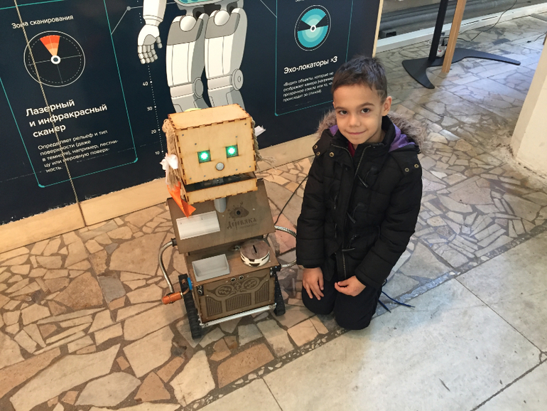 Этот робот - Левин любимчик! Я не знаю о чем,но он с ним общался около часа! Убегал от меня,пока я делала для Эвочки робо-коробку и все разговоры лишь о нем)))))