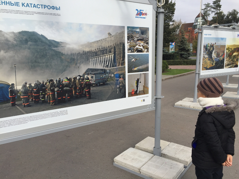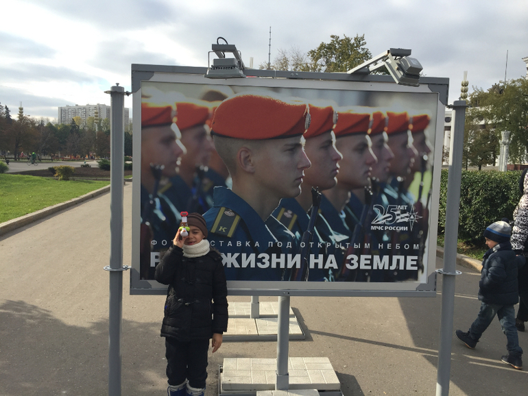Как раз между макдаком и вторым павильоном,где расположена роботостанция, проходит фотовыставка "Ради жизни на Земле" про работу МЧС...