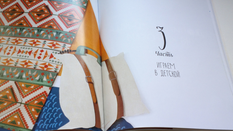 Третья часть книги -"Играем в детской"-расскажет как соорудить домик-мельницу из картонной коробки, сделать ширму для театра, гараж для машинок, игровой коврик, домик под столом и палатку для детей.