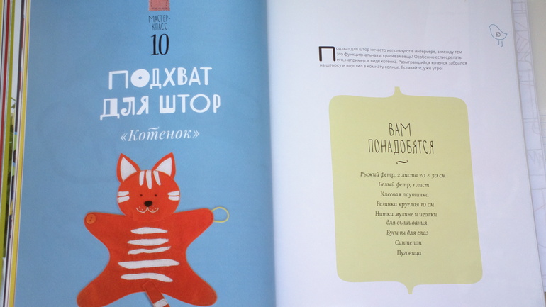 Таким образом, практически каждую поделку, описанную в книге, можно будет использовать не только в декоративных целях. И это не один пример. В книге есть мастер-классы по созданию не только красивых вещей, но и практичных. Птичка-ограничитель для двери или котик-подхват для штор может пригодиться в игре.