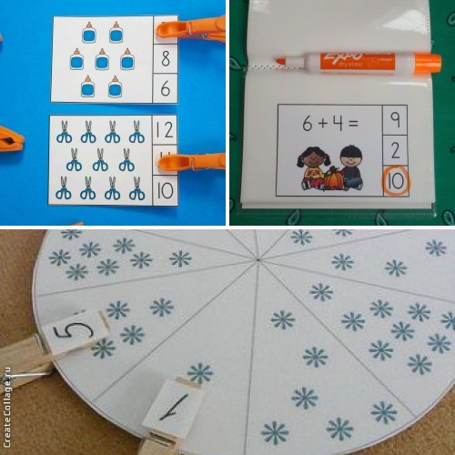 Предложите малышу сосчитать предметы на картинках и прикрепить прищепку с правильным числом на нужное место. А можно просто обвести цифру фломастером: Делюсь шаблонами математических карточек: