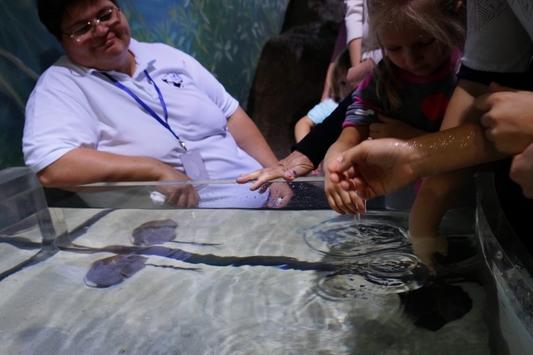 Ане хотелось посмотреть на Рыбу-хирурга, Рыбу-луну, рыбу-Ангела, пираньи, конечно же,акулу, дельфина и касатку. Опознала рыбу-ксмень, долго наблюдала нза морскими звездами. Впечатлили Камчатские крабы.