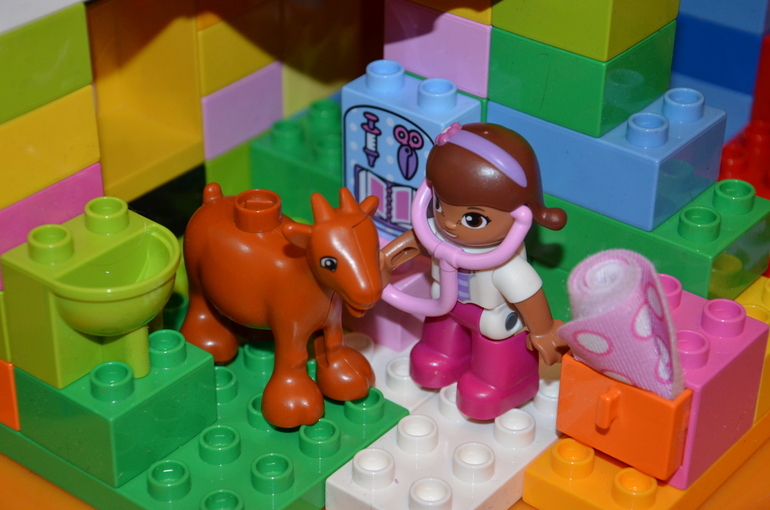 Мультфильмы на русском мы по-прежнему не смотрим, но вот этот наборчик нам пришелся очень кстати) Я летом решила пройти с Ладой диспансеризацию и вопрос анализов стоял остро в прямом и переносном смысле) В связи с этим, он был отложен на неопределенное время)) Сюжетно-ролевые игры в доктора не привели к успеху, а вот режиссерские... Впрочем, смотрите сами)
