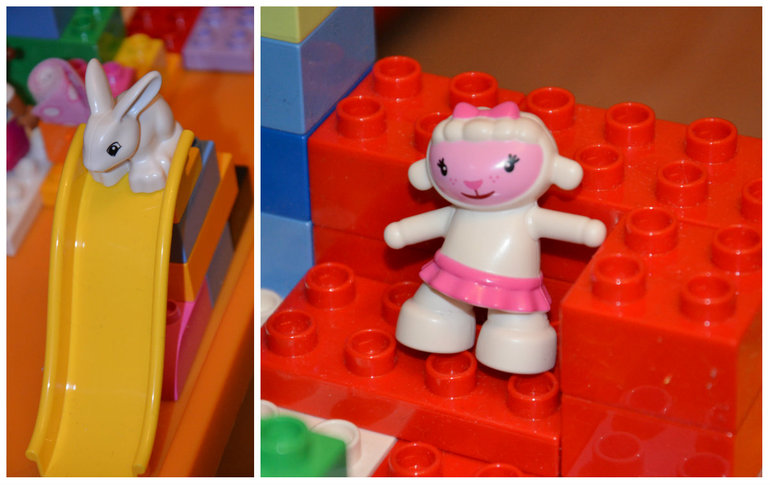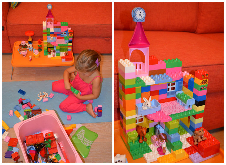 Поиграли в исходный состав мы довольно долго, но потом перешли к более масштабному строительству из всего имеющегося у нас LEGO DUPLO: