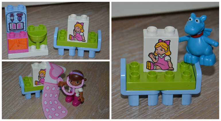Собственно сам набор: замечательный состав : горка, раковина с ящичком, кроватка, превращающаяся в стулья и очаровательные фигурки Доктора Плюшевой, овечки и дракончика!