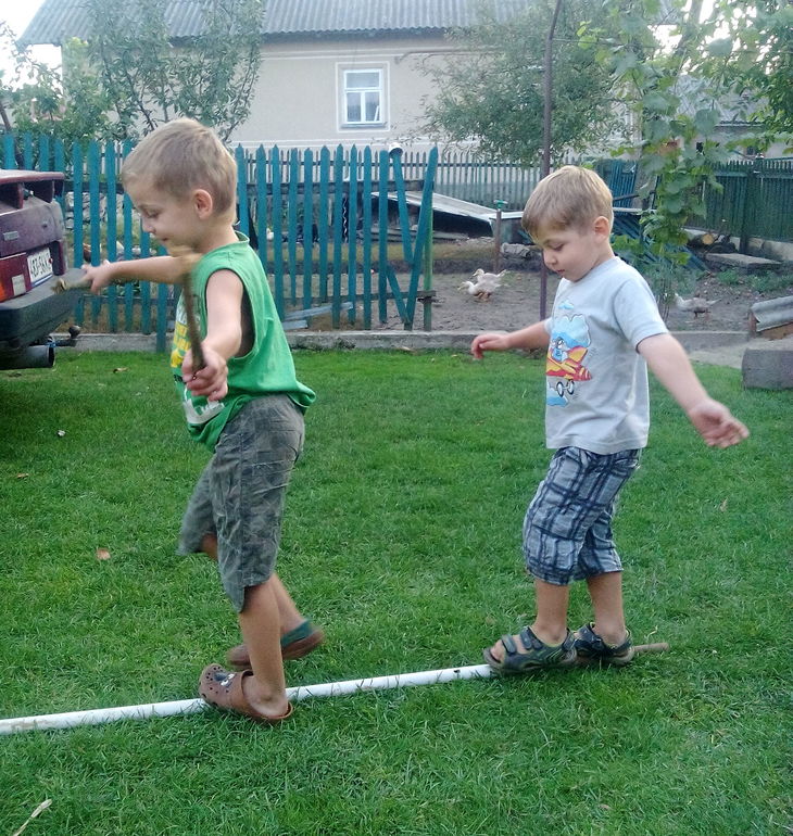 Ходим по линии, веревке, доске, трубе... Упасть нельзя - акулы слопают)))