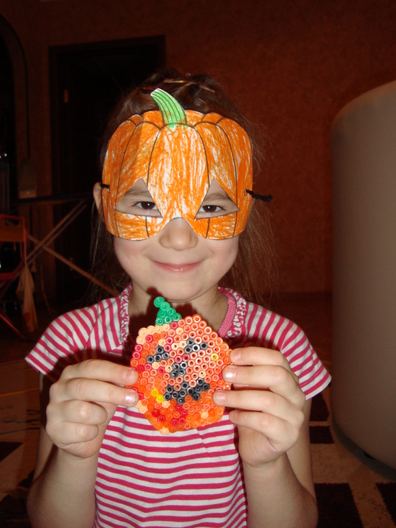 Сделали маски и тыкву из термомозаики.