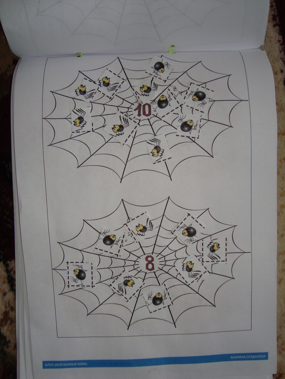 6 задание-поселить в замок привидения. На окошках написаны примеры, решаем и привидение с нужной цифрой заселяем)