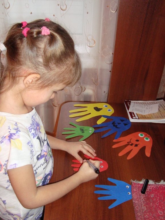 Делали привидений из ладошек.
