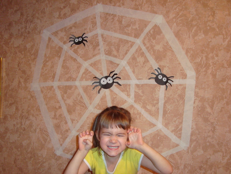 Обалденная паутина с семьей паучков)