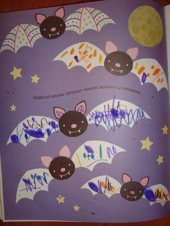 Украшаем крылья летучих мышей и рисуем пауков)