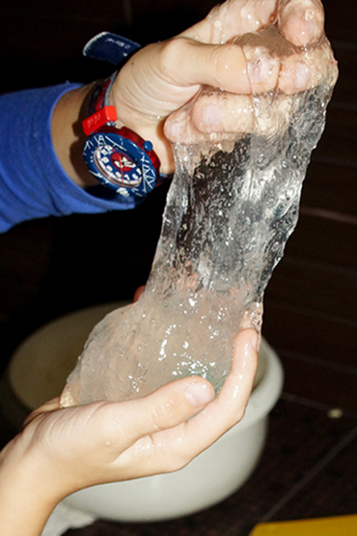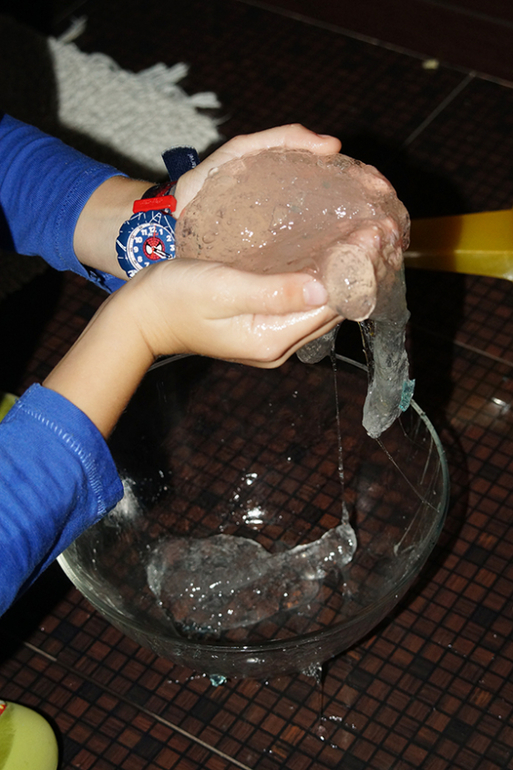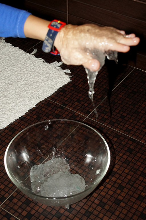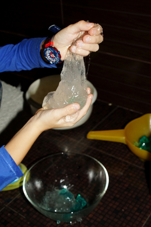 Замочили на ночь оба пакетика и теперь только придя из садика ребенок бежит в туалет играться со слизью и кристаллами)))