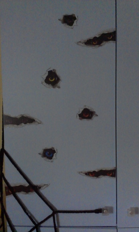Маски тоже вызвали бурю восторга,и детишки принялись усердно завывать,пугая драконов.Когда мы осмелели настолько,что открыли дверцу шкафа,черную кошку-призрак нашли не сразу,так как кошек было несколько.