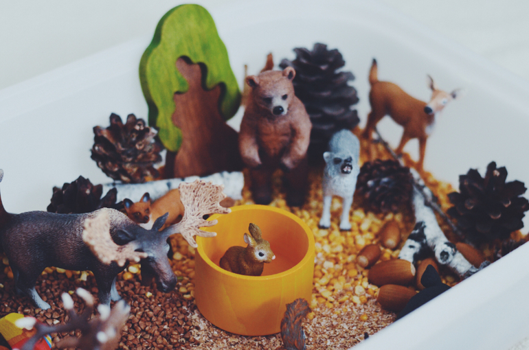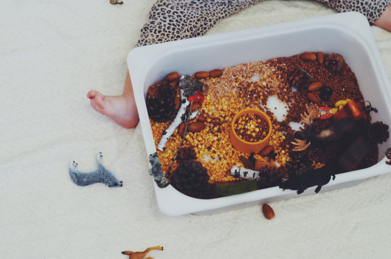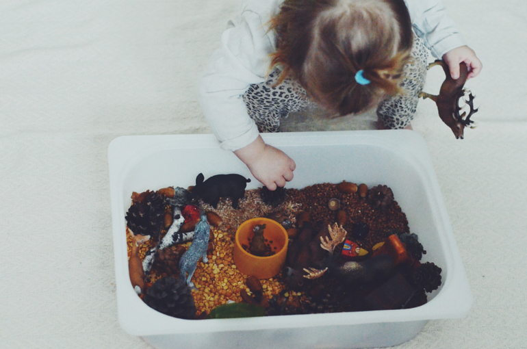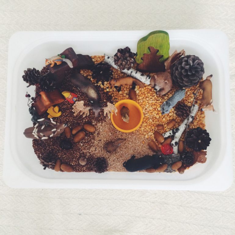 Игры и игрушки для малышей от 1 года до 2х летПока за окном резко менялась погода, валил снег, решила сделать для дочки лесную сенсорную коробку.
