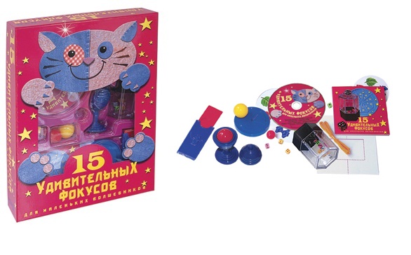Из подарков в этом году будет вот такой набор фокусов с диском,пять атрибутов-разделила на 5 дней,каждый день будет один новый фокус