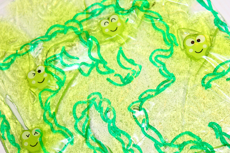 Маленькие лягушата заблудились в лабиринте из тины, нужно привести их к маме. Мама и малыши это разрезанные разделители для пальцев при педикюре ))))
