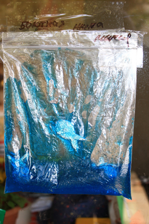 Краситель,Оксана обычные пищевые, в Ашане нахватала, с Пасхи остались еще. И хочу тебе сказать,что скраб-гель он жидковат,а вот гель для волос он более густой и двигать предметы внутри пакета труднее. Так что хорошо и тем и тем попробовать поиграть.