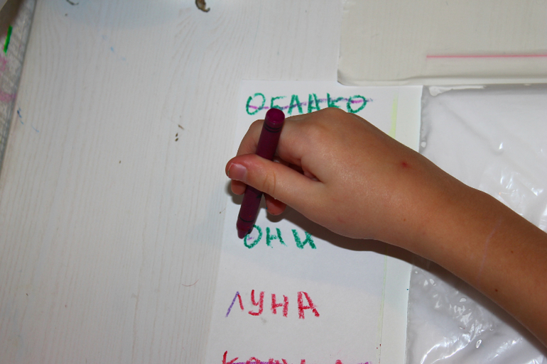 Вот Саша оттачивает навыки чтения, зрительной памяти и все это не с скучным листочком с словами, а с воздушной,любимой всеми пеной для бритья.