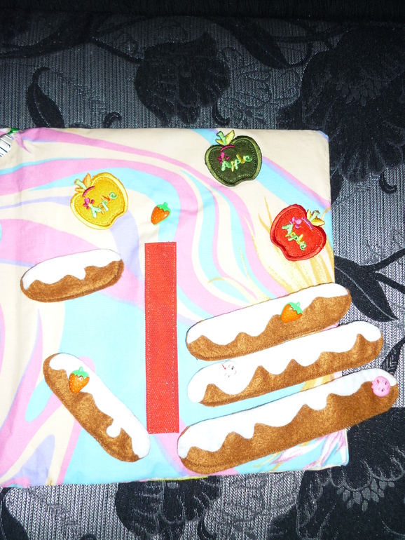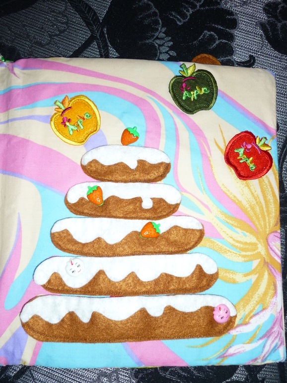 Следующая страничка - собери торт - пирамидку (детали на липучках)