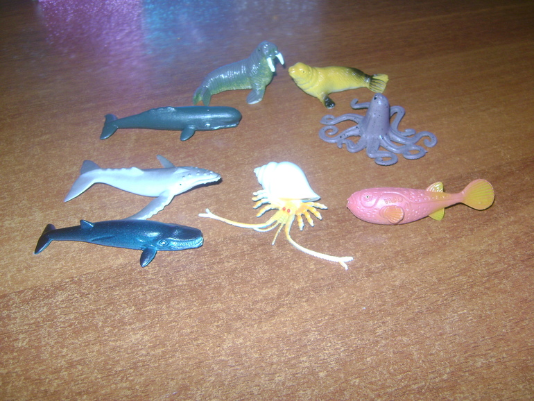 В одном из наборов можно сразу встретить китов и их представителей-Горбатый кит,Голубой и Кашалот