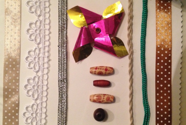 На картонку приклеила разные по фактуре ленточки-тесемочки. Можно проводить пальчиками малыша по ним. Ему будет очень интересно.