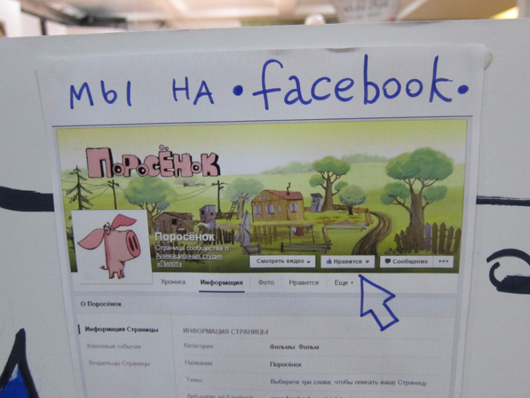 Здесь нам предложили вырезать поросенка, прикрепить ему уши и ноги на специальную жвачку, чтобы они могли двигаться. На листе А4 нарисовать фон мультфильма и придумать сюжет. Т.к. дело шло уже к закрытию и нас торопили, то сюжет нашего мультфильма был простеньким: поросенок шел по лесу и собирал пластилиновые грибы.