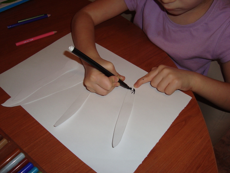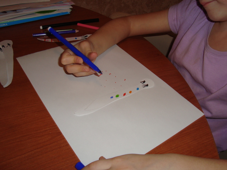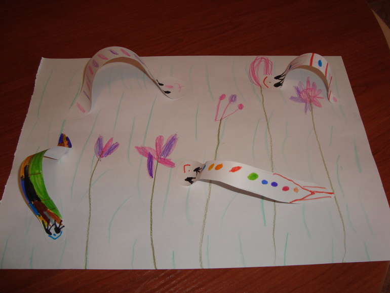 А я тем временем вырезала змеек. Тася их украшает.