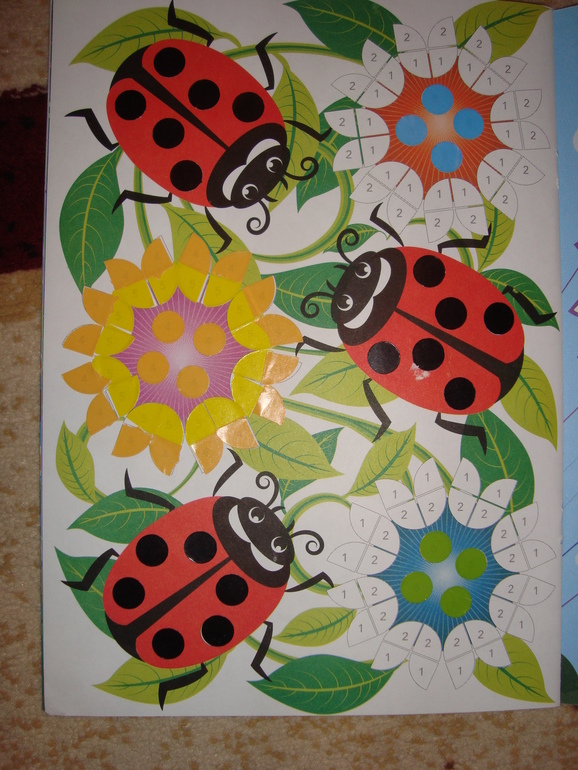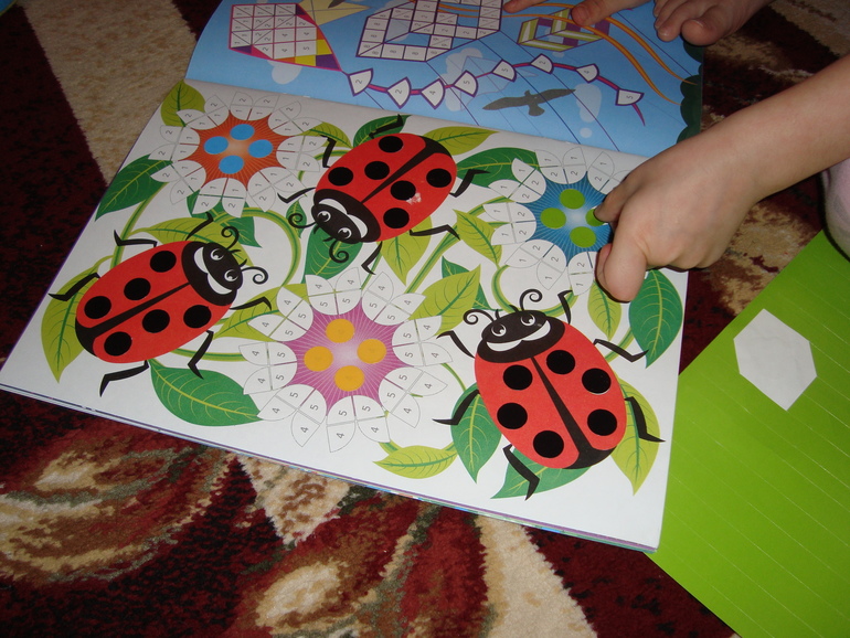 Клеили наклейки по цифрам.