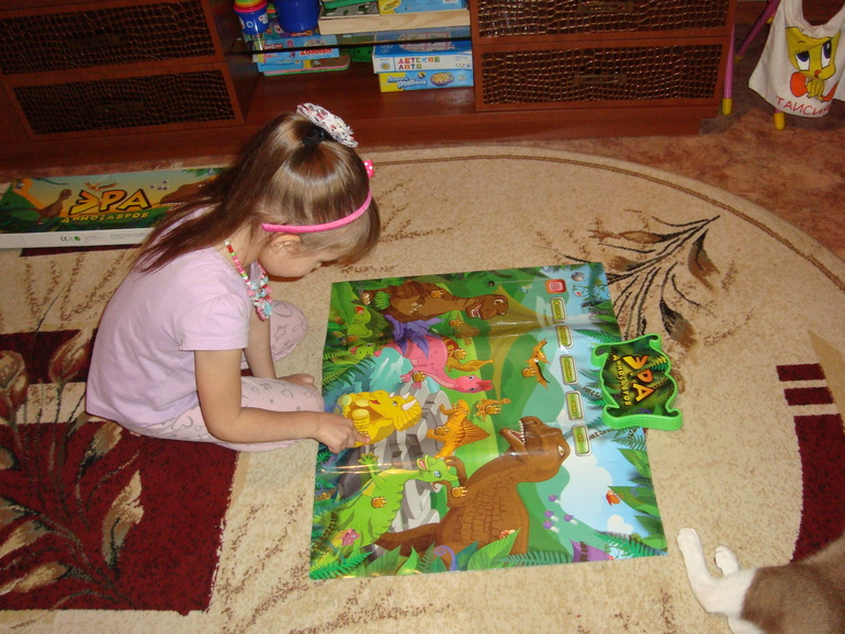 Потом послушали голоса динозавров на звуковом плакате, поиграли в режиме "Найди" ( ищем вид динозавра по запросу)