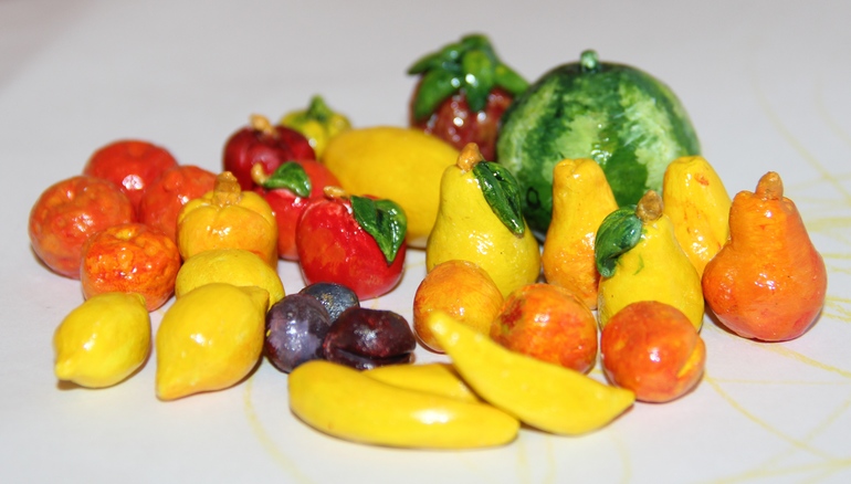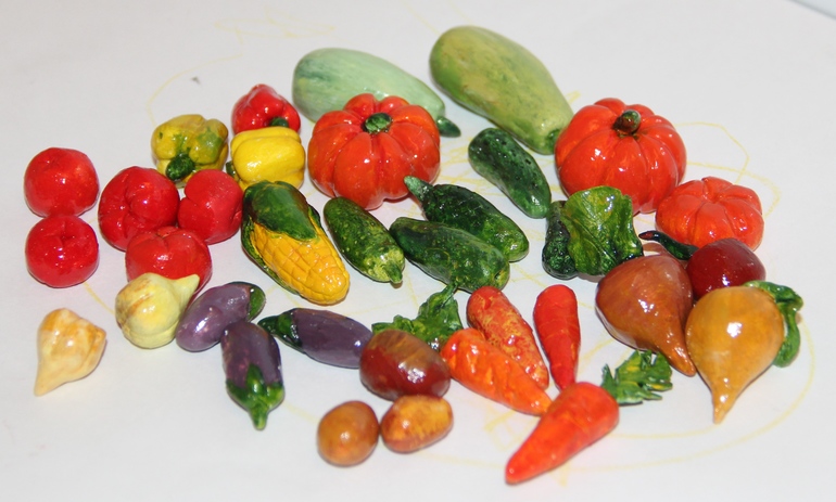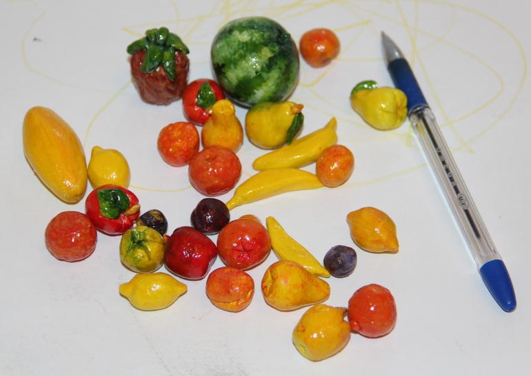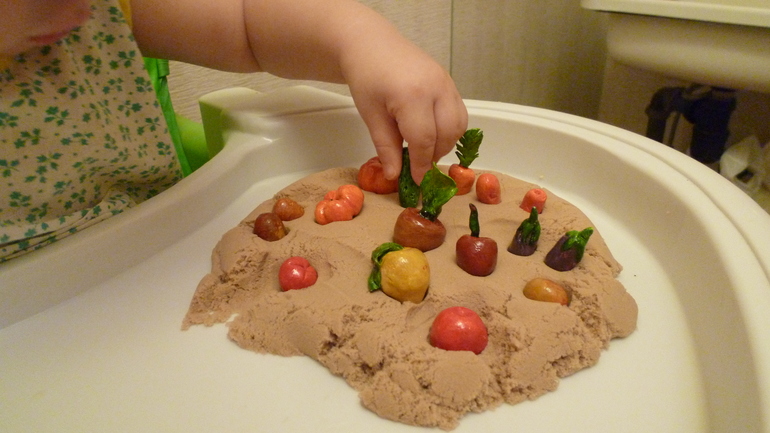 Ну вот не хватало нам мелочевки. Особенно я заглядывалась на маленькие овощи и фрукты: деточки на фотографиях в ББ садили грядки в песочке, раскладывали по тарелочкам салаты, играли в лото с чудесными маленькими фруктами. В магазинах попадались только пластиковые, и в то в натуральную величину. Мне понравились резиновые, но как-то все не решалась заказать.