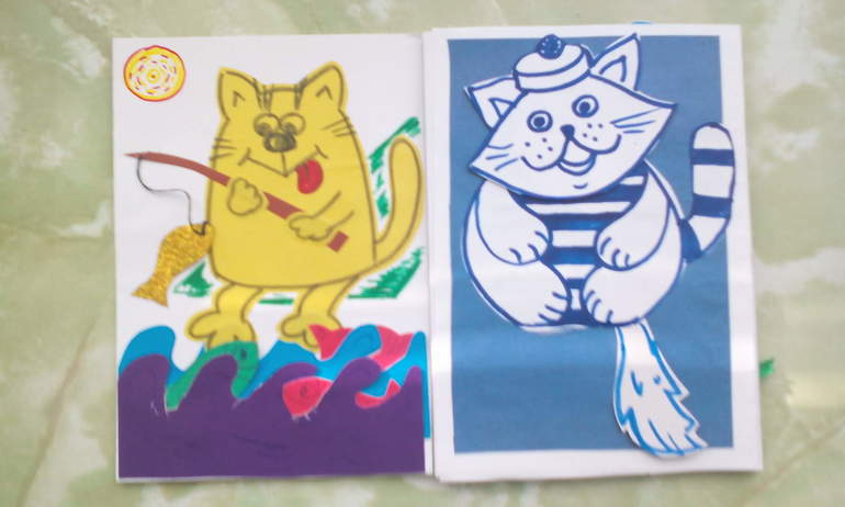 Многие поделки-динамические,подвижные,например-у матроса голова поворачивается,рыбок достать и вставить можно и т.д.Если будут вопросы-поясню.Удачных поделок!