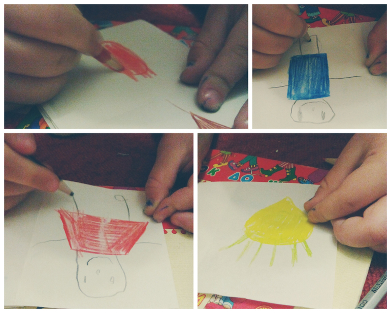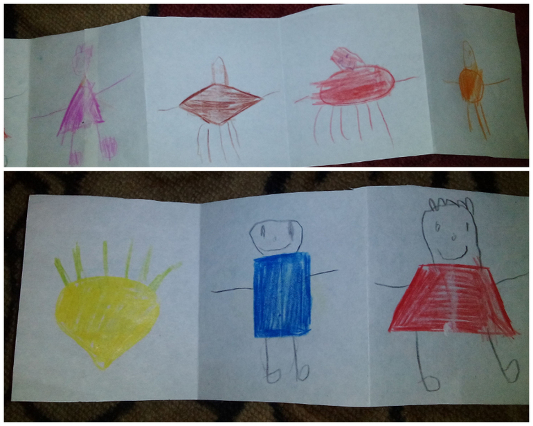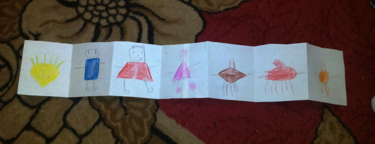 Репка-раскладушка. Я нарисовала геометрические фигуры, а Паша дорисовал персонажей.