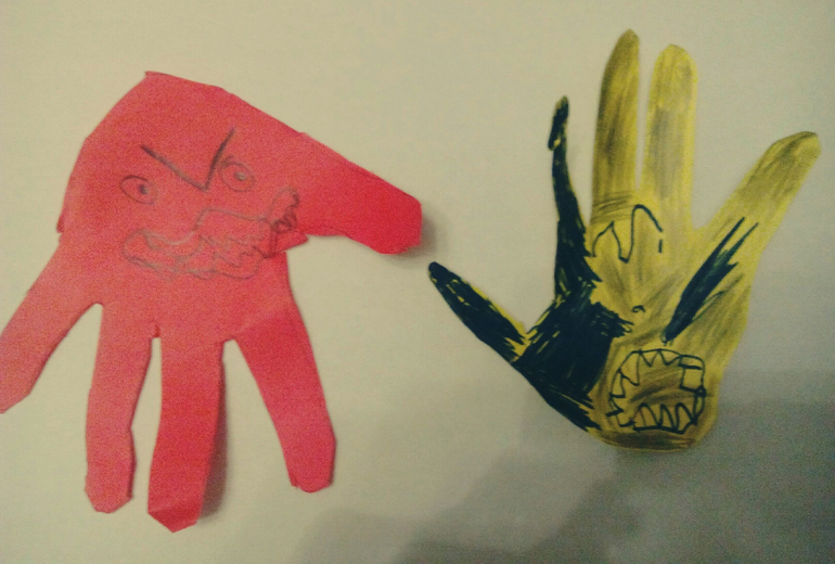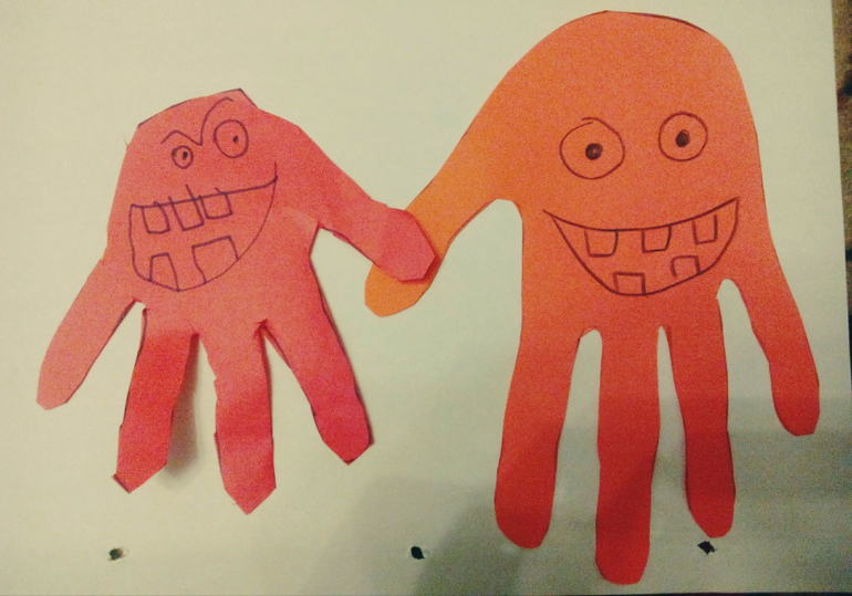 Обвели ладошки, вырезали и нарисовали чудиков.