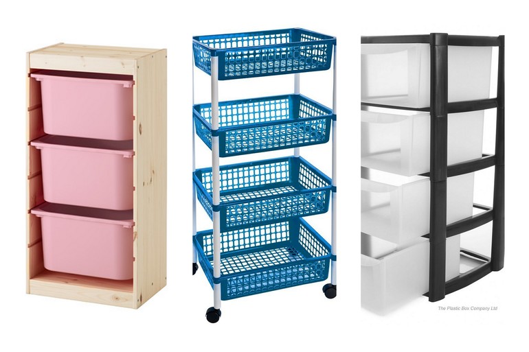 1. Одиночный ТРОФАСТ из Икеи и поставить его у стеллажа. Тогда сразу доп.вопрос - как поодбрать уже сейчас ящики с учетом на будущее - сколько маленьких, сколько больших?