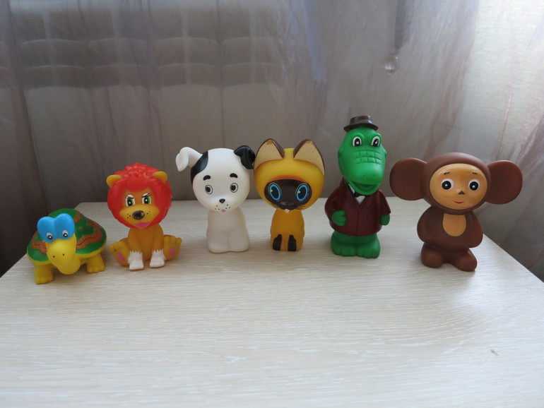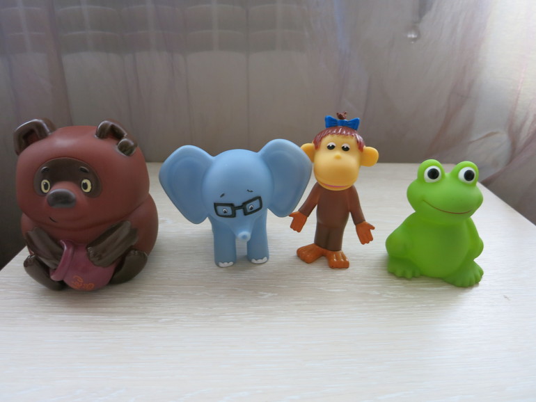 Это наши любимки с 9 месяцев и до сих пор (нам 1,8 почти). Эля с ними не расстается, везде таскает с собой, на улицу, в ванну, обыгрываем сценки, кормим, строим для них домики, катаем на машинке. Игрушки марок "Играем вместе" и "Капитошка". Материал пластизоль, без запаха, безопасен. Мы их до сих пор грызем. В Донецке купить можно в Маугли на пр.Театральном (в последний раз там были Леопольд и мыши, Шарик с Матроскиным, русалочка Ариэль с рыбкой и крабом, машинки Тачки, цена 224 рубля за набор), в Детском Мире на втором этаже магазин "Солнышко" (там есть Винни Пух 200 руб, фиксики (дороговатые 330 рублей за пару), Барбоскины, персонажи сказки колобок), в Маяке на первом этаже у тетечки видела крокодила Гену и львенка, который "Я на солнышке лежу" пел, в Детском мире на первом этаже в отделе для малышей есть игрухи для купания марки "Капитошка" тюлень, пеликан, лягушка и др. по 50-60 руб.