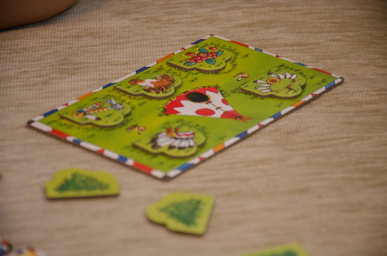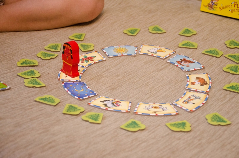 Если Маленький Лис оказывается на секторе с заданием, нужно попытаться перевернуть карточку-кустик с таким же изображением как на секторе. Если изображения на секторе и карточке-кустике совпали, то задание считается выполненным, и Вы можете положить карточку-кустик в вигвам (карточка для заполнения). Цель игры быть первым, кто выполнит пять заданий.