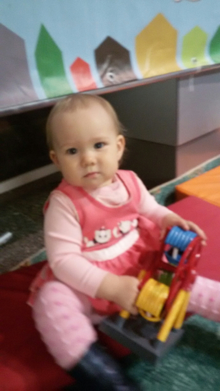 нашла игрушку себе по возрасту - довольная присела поиграть.