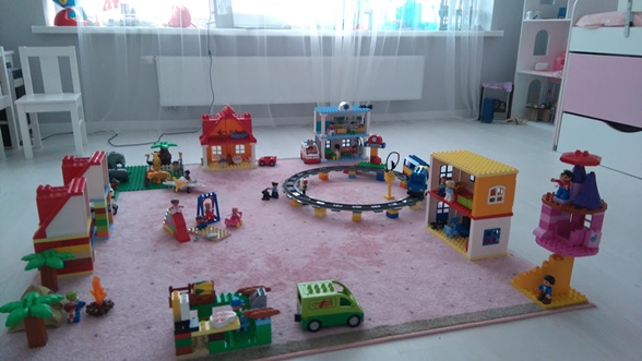Мои девочки домики строят постоянно, хотя у нас и дом сильвании, и куча замков для принцесс, и дом барби. А вот построить самим домик из дупло им очень интересно. Кроме того младшая (тот еще разрушитель) может бесконечно строить башенки. Помимо игрового использования лего на ББ много постов с развивашками из него.