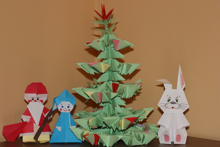 . А Дед Мороз, снегурка и зайчик - оригамушки. Если кому интересно, могу скинуть схемку. Старшие дошкольники-началка вполне сделают сами )