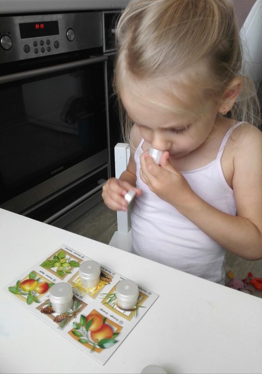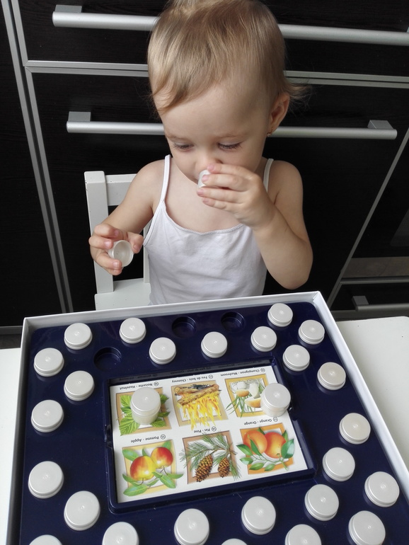 Эту замечательную игру дарили Дашуле на 3 года! Ох сколько было восторгу,просила играть в нее постоянно! Первые пол года каждый день точно! Честно, мне самой всегда интересно в нее играть, да и мужу!!! Сейчас и младшая Сонечка играет с нами, всегда точно показывает банан, костер, сосну, мыло и апельсин, в остальном пока плавает))) Дашуля справляется очень хорошо, многие ароматы узнает точно, иногда что-то путает!