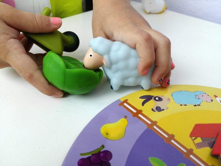 Дашуля у меня справляется очень хорошо, Сонечке тяжело))) Во время игры мы все обсуждаем, что животные в хлеву, что насекомые живут везде но их много на лугу, где пасутся животные. Что инструменты хранят в кладовых в сарае, так же обговариваем какой инструмент для чего нужен))) И просто играем фигурками)))